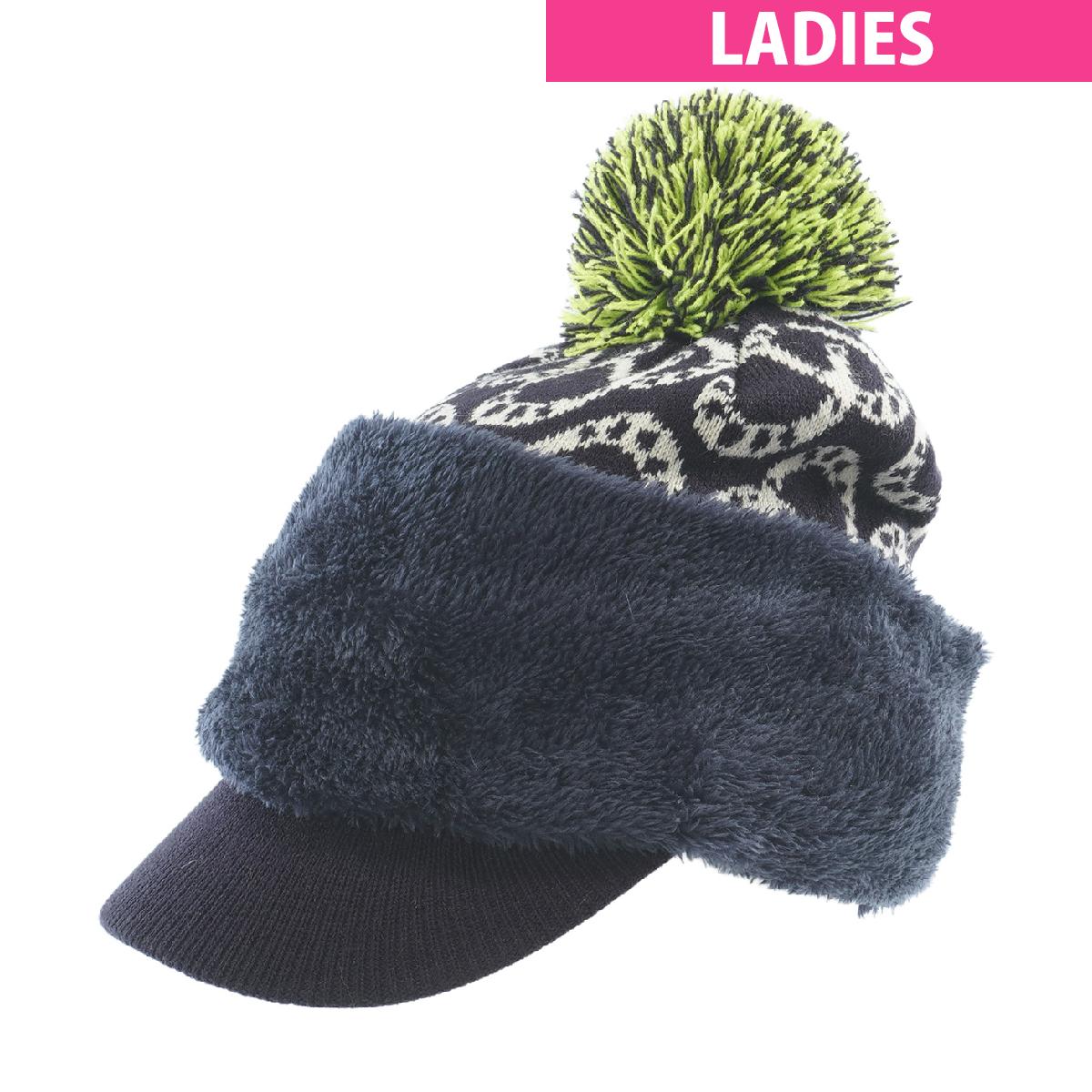 VIVA HEARTオリジナルプリントを全面に配したツバ付きニットキャップ。