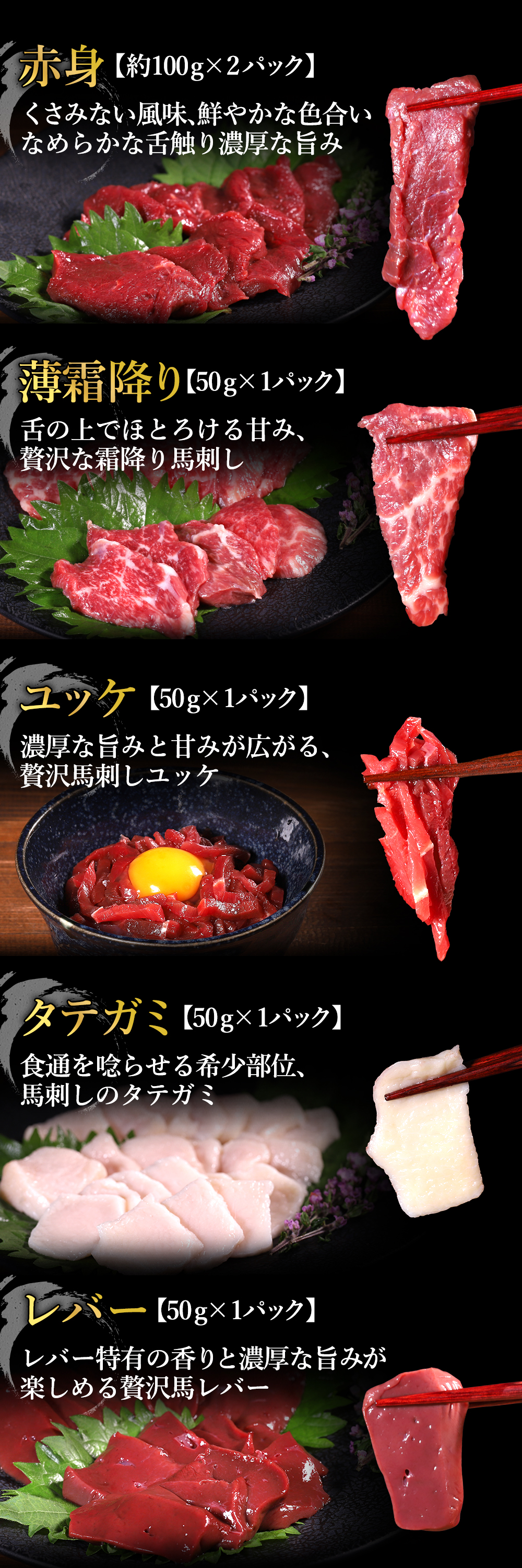 | 規格・内容 | ■馬刺し薄霜降り50g |