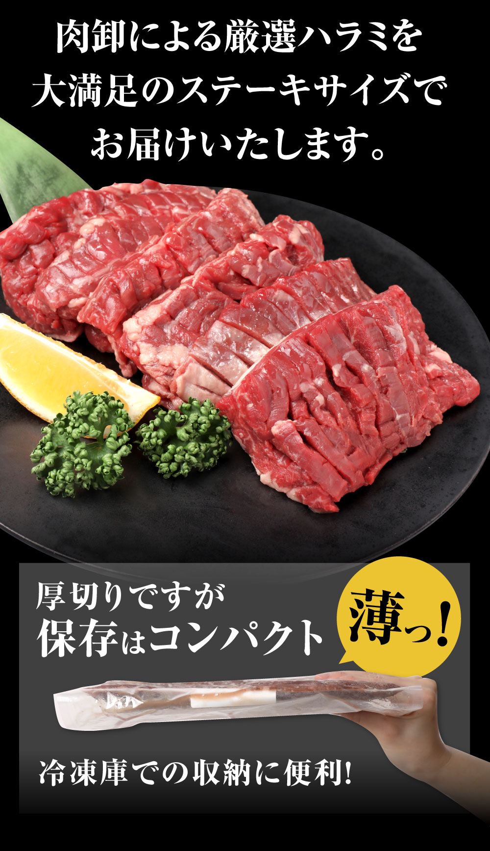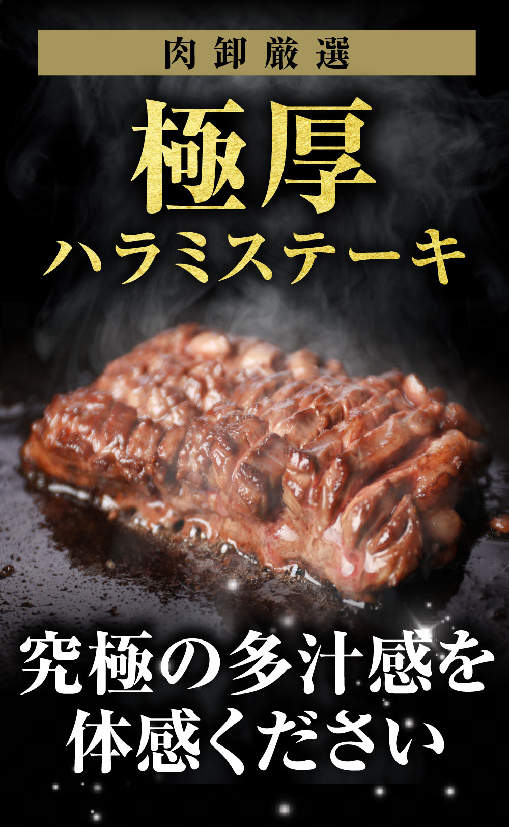 爆買 肉卸厳選の究極の多汁感を堪能できる極厚なハラミステーキ500gです。