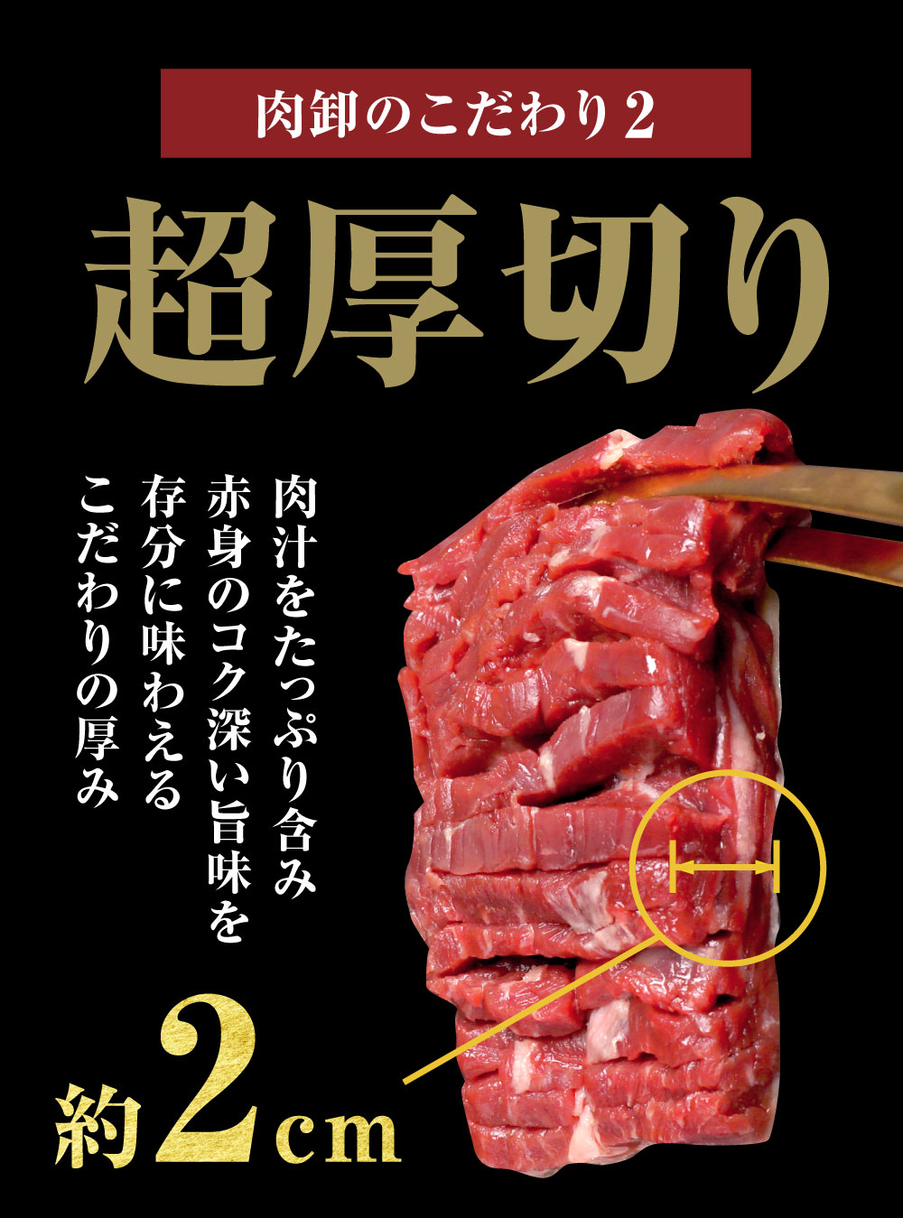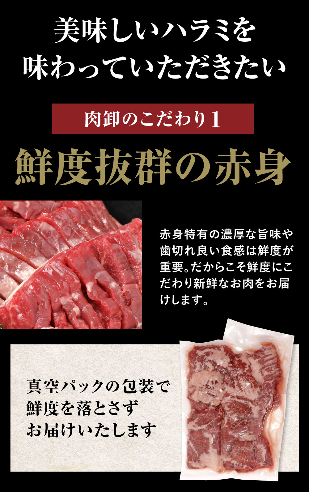 厚切りの牛ハラミならではの、口に入れれば広がる肉の旨みとジューシーさをご堪能ください。