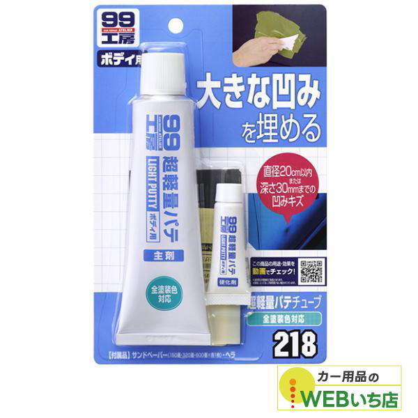 マイクロバルーン(超軽量球)配合で、パテ自身が非常に軽いので、広くて深いヘコミの補修にオススメです。