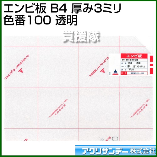 品名:エンビ板 B4 厚み3ミリ 色番100 透明