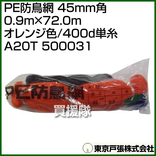 東京戸張 PE防鳥網 45mm角 0.9m×72.0m オレンジ色/400d単糸 A20T 500031 カラー:オレンジ色