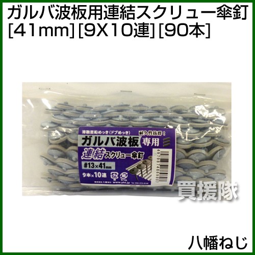 八幡ねじ ガルバ波板用連結スクリュー傘釘 41mm 9X10連 90本