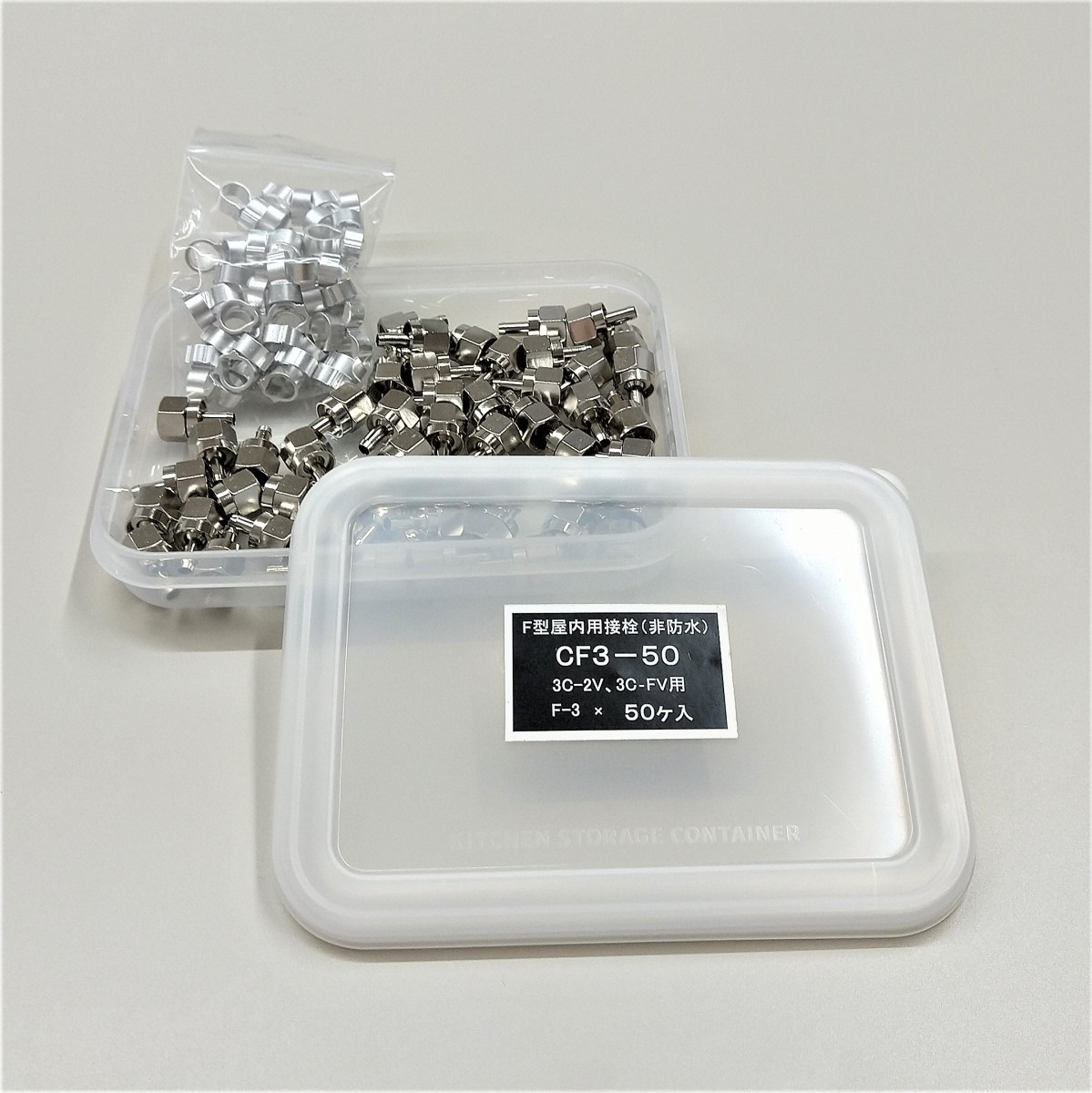 F型接栓 コネクタ 屋内3C用 50ヶ 送料299円(税込)!フルオープンケース入 メール便配送で!日本全国どこでも!監視カメラ中継延長用 1ケース CF3-50