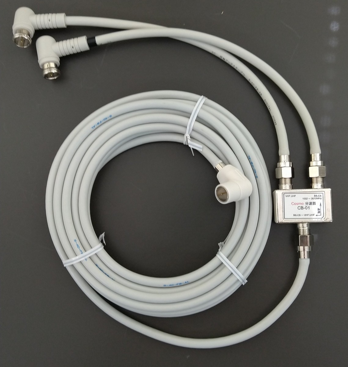 アンテナ分波器 全長5m 送料こみ込み!入力ケーブルL型プッシュ、出力ケーブルプッシュ接栓付 S4C-FB 薄灰色 メール便ご利用で!日本全国どこでも!!CB2PLS-5L