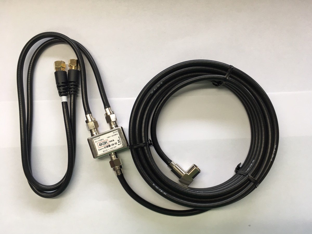 アンテナ分波器 全長2m 4K8K対応!入力ケーブルL型プッシュ、出力ケーブルネジ込み接栓付 S4C-FB 黒色 メール便ご利用で!CB2FP-2BL