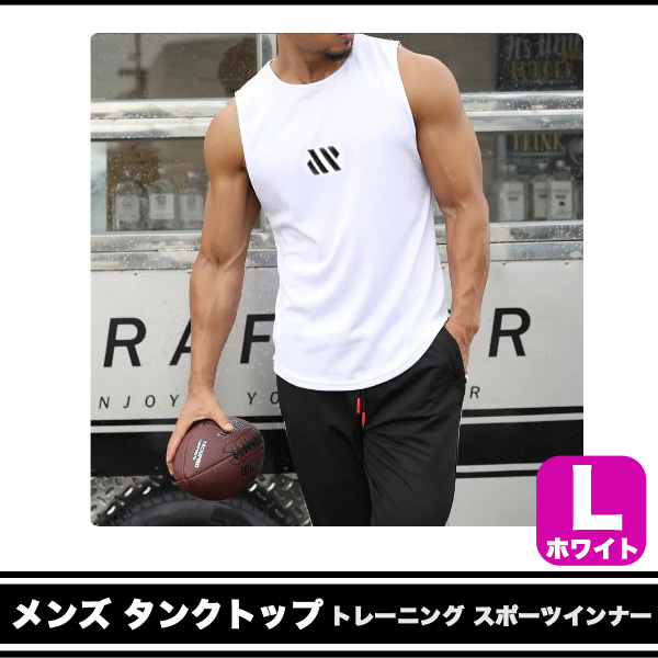 メンズ タンクトップ トレーニング スポーツインナー 筋トレ 吸汗 速乾 L 白/M14