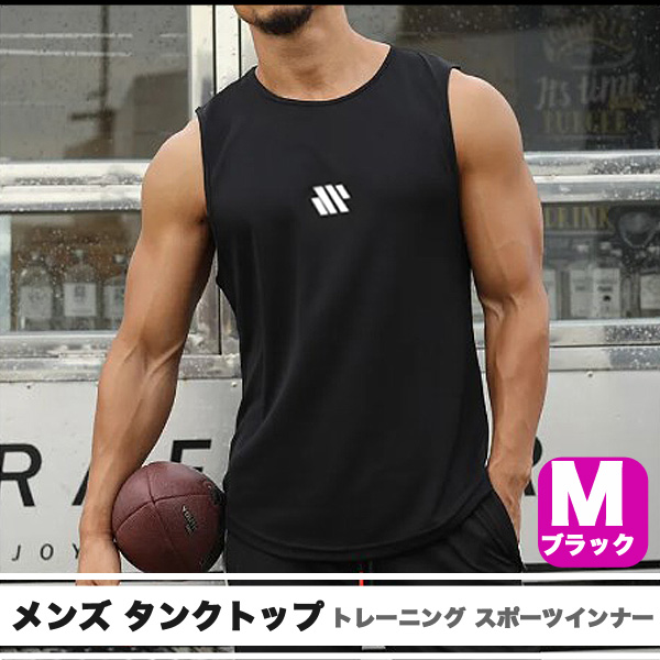 メンズ タンクトップ トレーニング スポーツインナー 筋トレ 吸汗 速乾 M 黒/ M16