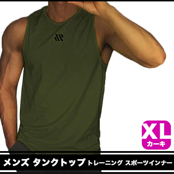 メンズ タンクトップ トレーニング スポーツインナー 筋トレ 吸汗 速乾 カーキ XL / M3