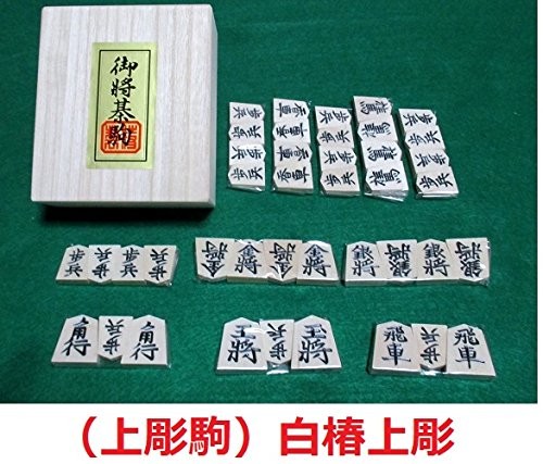 【新品】木製将棋駒 白椿上彫 (上彫駒) 桐箱入