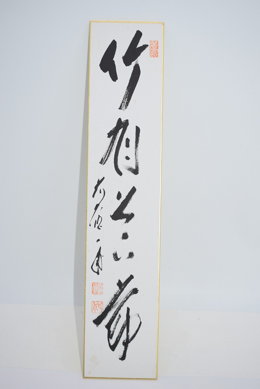 短冊 前大徳 蔵雲寺 矢野 一甫 「竹有上下節」 茶道 03-9301 約(36.3×6.2)cm 折れ、汚れ、当り、シミはありますが、本体はしっかりしています、お稽古にお使いになるには差し支えありません。