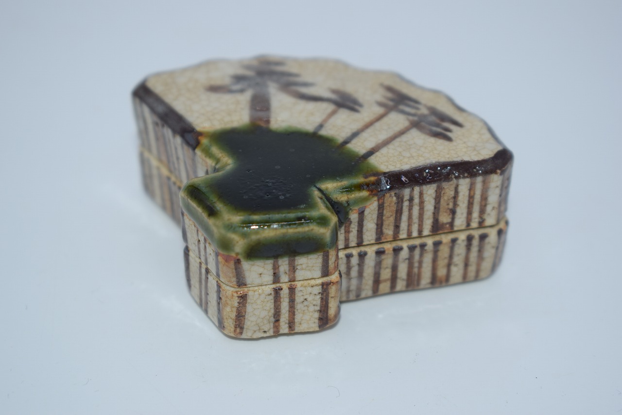 茶道具 織部 扇 香合 山口 茂 作 茶道 7.1×5.6cm 高さ2.6cm 擦れはありますが、本体はしっかりしています、お稽古にお使いになるには差し支えありません。