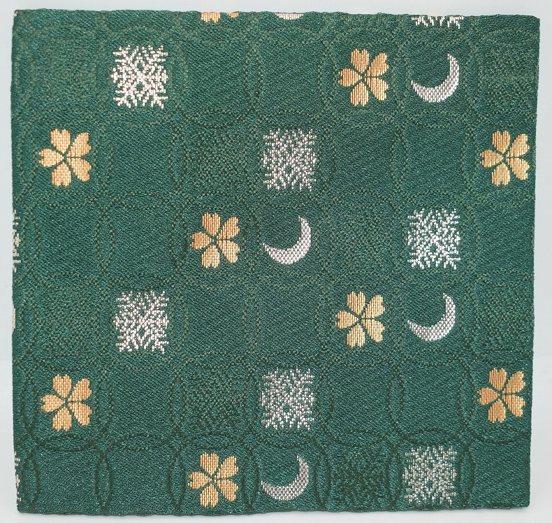 茶道具 帛紗 服紗 千歳盆用 古帛紗 緑 交織 茶道 t 注)画像は色見本です、模様の出方は個々に異なります。 ms33-005 縦約12×横約12.5cm 名物裂 敷物 帛紗 服紗 袱紗