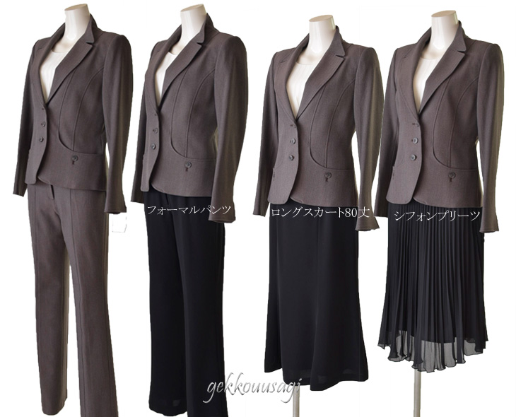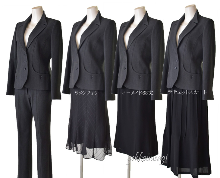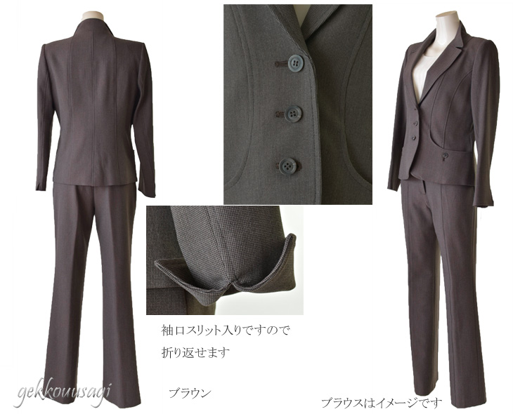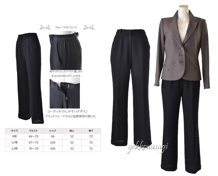 9号、11号、13号、15号サイズのパンツスーツです。
