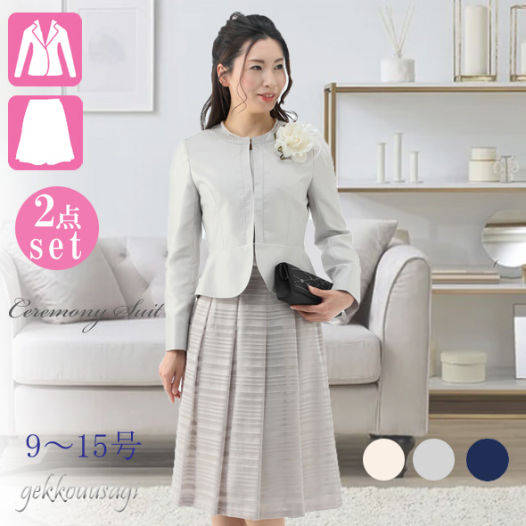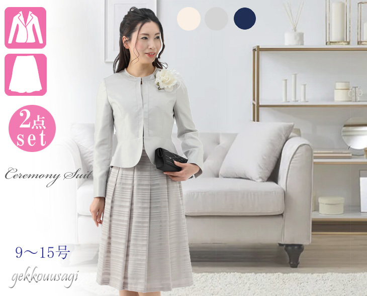 9号、11号、13号、15号サイズの上品なカラーフォーマルスーツです。