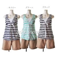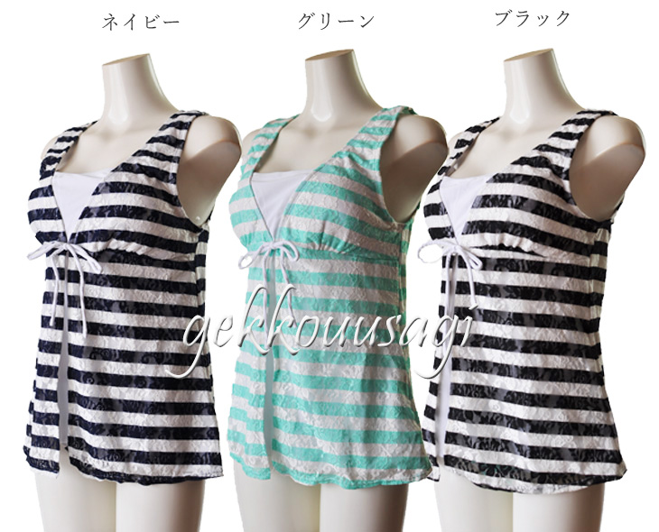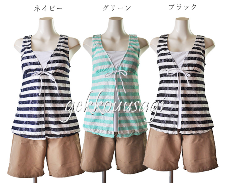 水着 レディース 体型カバー 30代 40代 50代 60代 可愛い 15号 17号 19号 ボーダー柄 3点セット 安心水着 ショートパンツ付き 可愛い水着 ネイビー・グリーン・ブラック