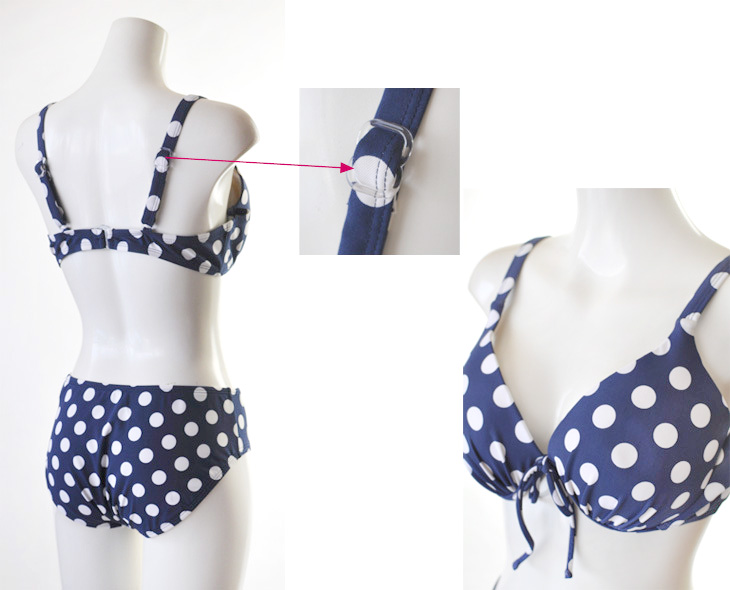 水着は安心のしっかりめ素材で、ブラはワイヤー入りなのも◎。