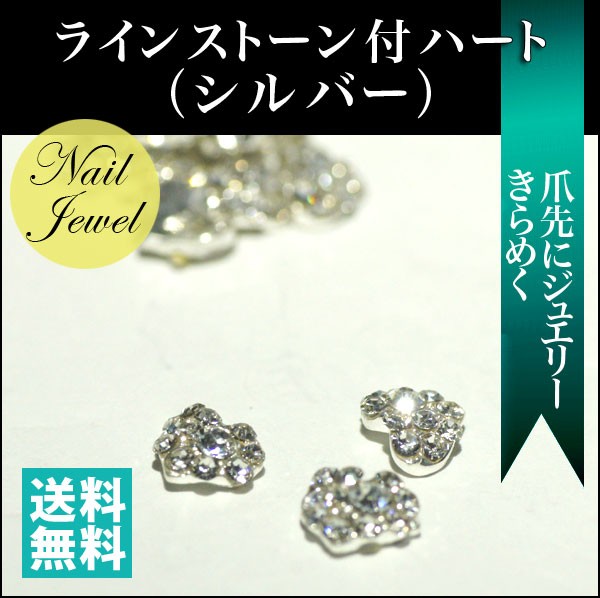 ネイル パーツ ラインストーン付ハート (シルバー) 内容量2個「DM便可」 gln03