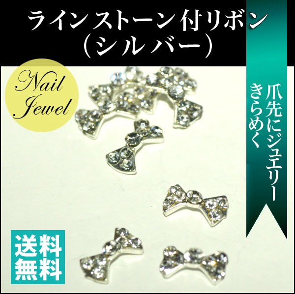 ネイル パーツ ラインストーン付リボン (シルバー) 内容量2個「DM便可」 gln03