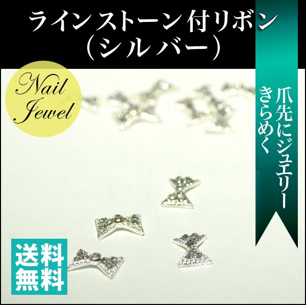 ネイル パーツ ラインストーン付リボン (シルバー) 内容量2個「DM便可」 gln03