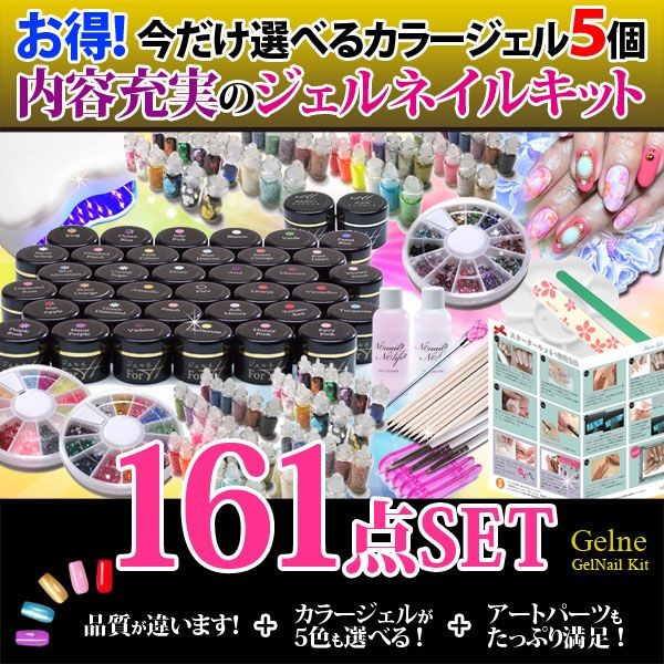 ジェルネイルセット (超豪華特盛161点)LED3W付きですぐに始められる カラージェル5個セット取扱い説明書付きで簡単ネイル