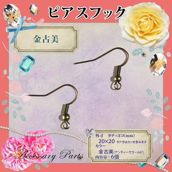 UVレジン アクセサリー ピアスフック (金古美orシルバーorロジウム) 6個入(3対)レジン手芸用