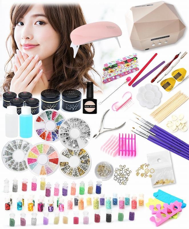 (期間限定) 超豪華特盛253点+今だけ36Wライトも Aタイプ Gelneオリジナル選べるカラージェル5個付 LED付属 ジェルネイル スターター キット