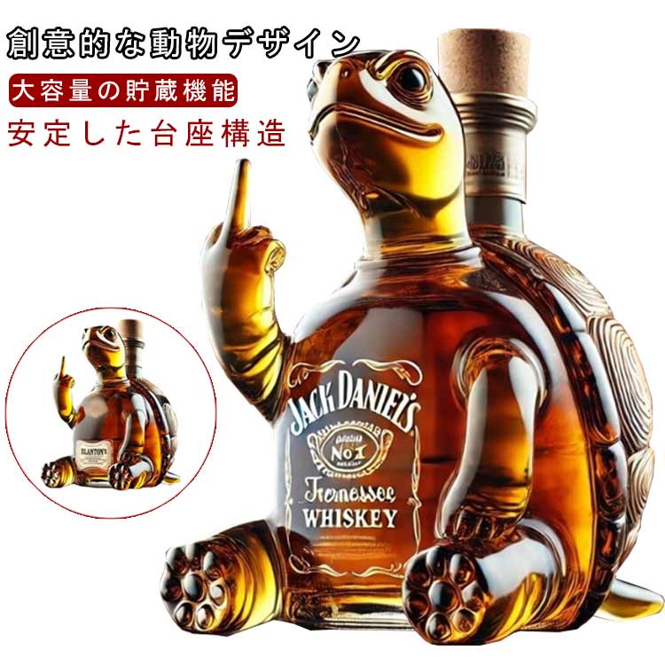 ウィスキーボトル 350ml 動物柄ガラス容器 カメ 耐熱ガラス製 蓋付き クリア ウイスキーデカンター アルコール用デキャンター プレミアムウイスキ