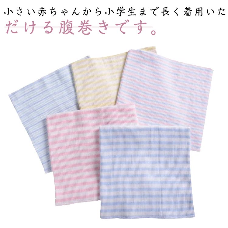 | 小さい赤ちゃんから小学生まで長く着用いただける腹巻きです。 通気吸湿性に優れておりますので、汗っかきなお子様でも蒸れにくく快適な着心地が続きます。 抜群の伸縮性がありますので赤ちゃんのお腹にやさしくフィットします。 日中の着用はもちろん、寝るときやお部屋での冷え対策としてもオススメです。 夏は冷房対策、冬は寝冷え対策に季節を問わず一年中お使いいただけます。 | |