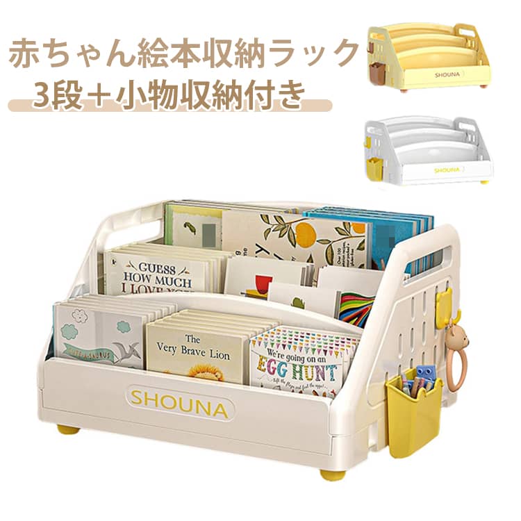 | 「じぶんで」を育てる、22cmの魔法:約22cmの低さが、お子様の「じぶんで!」を叶えます。一人で簡単に絵本を取り出せる喜びを。 見やすい配置:背表紙しかないのと違って、表紙が見えるとたんに、絵本がぐっと魅力的に見えて「読んでみたい!」って気分がめちゃくちゃ上がるよね。 実用的な収納:収納部分はそれぞれ8cm、13cm、19cmの深さ。また奥行きは各6cmあるので、絵本の大きさに合わせて収納できます。 移動便利:側板には取手の穴があります。使う場所の移動や模様替えの際に大人の方が持ち運びやすい形状になっています。 | |