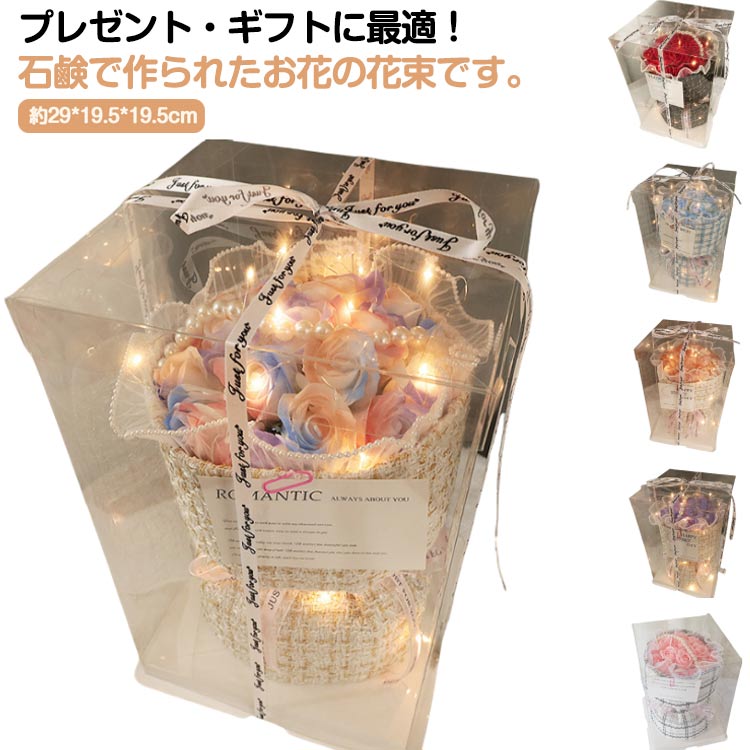 | プレゼント・ギフトに最適! 石鹸で作られたお花の花束です。 ソープフラワーと言えば、生花のように色鮮やかななイメージが多いですが、パステルカラーのソープフラワーブーケ、出来ました。 白を基調に柔らかいカラーのグラデーションがキュートで愛らしいブーケです。 優しいカラーの和紙とお花のまわりにはパールをあしらった清楚なブーケです。 母の日、出産のお祝いや結婚のお祝いにも喜ばれそうですね。 | |