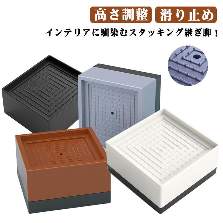 | インテリアに馴染むスタッキング継ぎ脚! 家具の高さ合わせに! テーブル脚の高さ調節やの足の継ぎ足しに最適! 特殊ゴム継ぎ脚でズレ知らず。安定感抜群、使いやすさが格段に向上! 机、、ソファー、ベッドなどの高さ調整に! | |