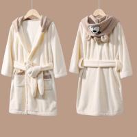 くま耳フードが付いたふんわり柔らか素材の子供バスローブ。