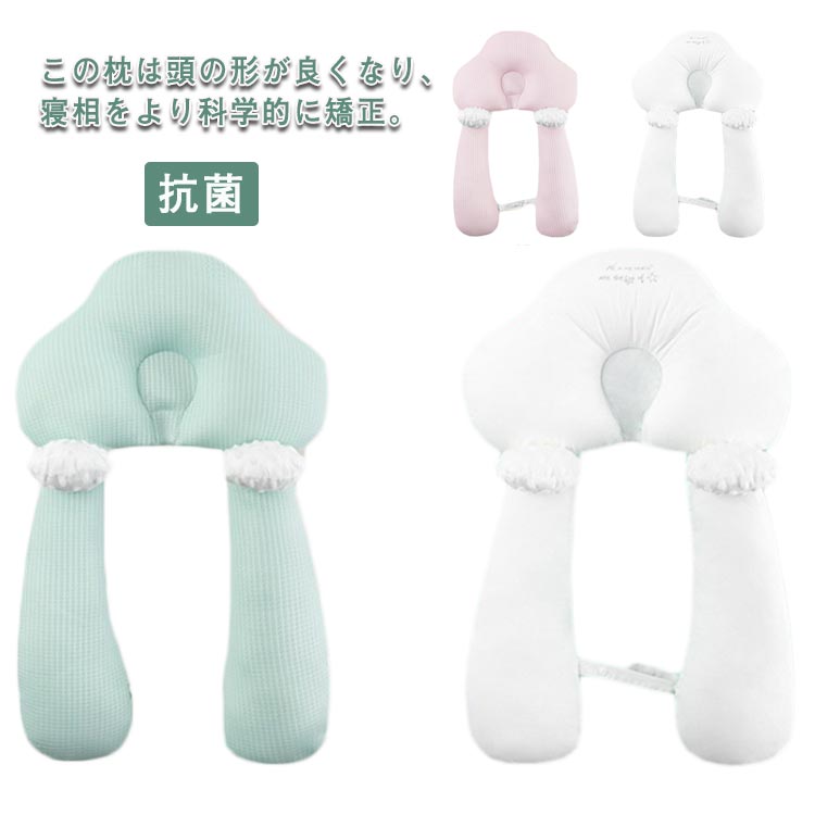 | この枕は頭の形が良くなり、寝相をより科学的に矯正。 両腕ハグ設計で、お母さんの腕の中で寝ているような感じです。 お母さんに抱かれるような安全感で赤ちゃんをより快適に眠らせます。 赤ちゃんの頭がドーナツ枕部分によりフィットして固定されるので寝返りするのを防いでくれます! 紐でくぼみ大きさを調節することで、頭蓋形状を科学的に矯正します。 表は綿100%、裏はメッシュ素材を使用しているので、春、秋、冬は表を、暑い夏はメッシュ側を表にして使うことで一年中快適に使えます! | |
