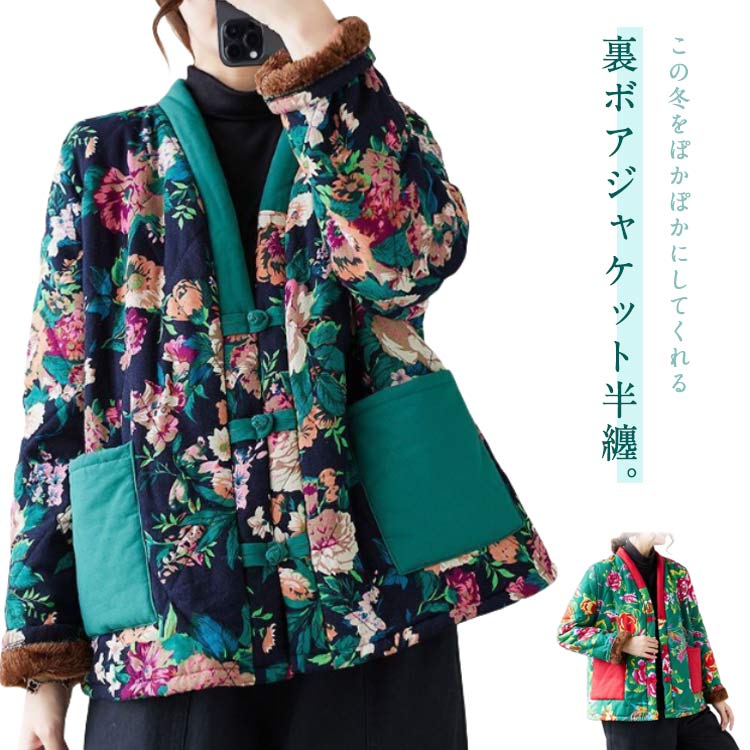 着てすぐ暖かい裏ボア半纏 レディース ジャケット半纏 中綿 はんてん 冬 ルームウェア 部屋着 女性 ショート 袢纏 半天 冬服 羽織り 前開き ポケ