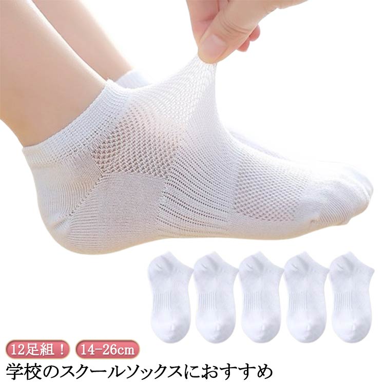 スクールソックス 12足セット 子供 靴下 クルー丈 オールシーズン 用 白 ソックス キッズ 男の子 女の子 制服 幼児 小学生 イベント 14 1