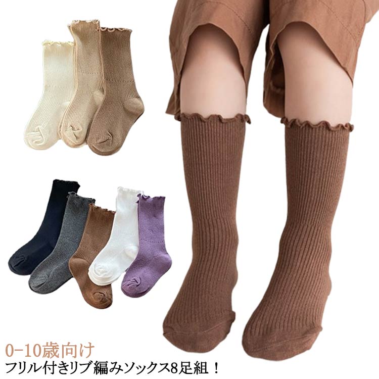 フリル付きリブ編みソックス8足組!