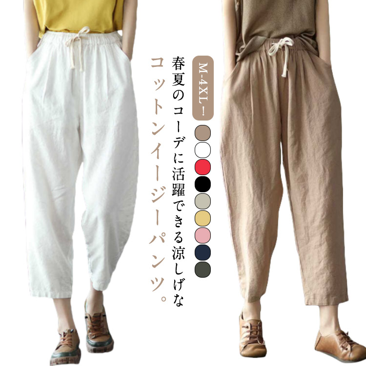 | M-4XL!春夏のコーデに活躍できる涼しげなコットンイージーパンツ。 豊富なカラバリ展開で色違い揃いにもオススメです。 清涼感あり、薄い素材タイプ、夏の間も着用ができるほど薄手で肌触り。 足首をすっきり見せるやや短めの九分丈です。 ウエスト部にゴムが入り、穿き脱ぎしやすいです。 森ガールのナチュラルな風合いと生地もストレスフリー。 シンプル無地デザインだからどんなトップスとも好相性◎ | |