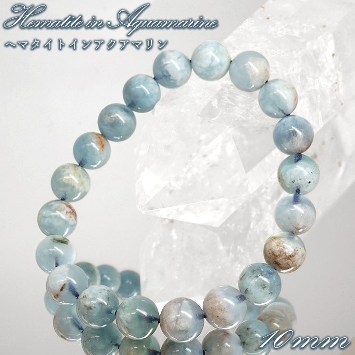ヘマタイトインアクアマリン 10mm ブレスレット ブラジル産 【一点もの】 アクアマリン 高品質 ヘマタイト 希少 内包 天然石 パワーストーン カラーストーン