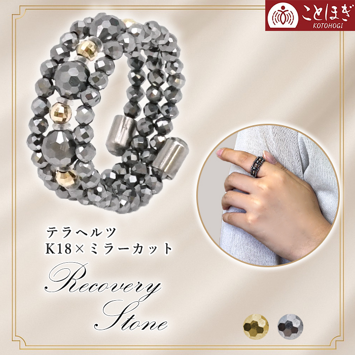 テラヘルツ ミラーカット K18 形状記憶リング 日本製 自社製 高純度 テラヘルツ鉱石 血流改善 肩こり 冷え性 健康ストーン 国内品質検査済