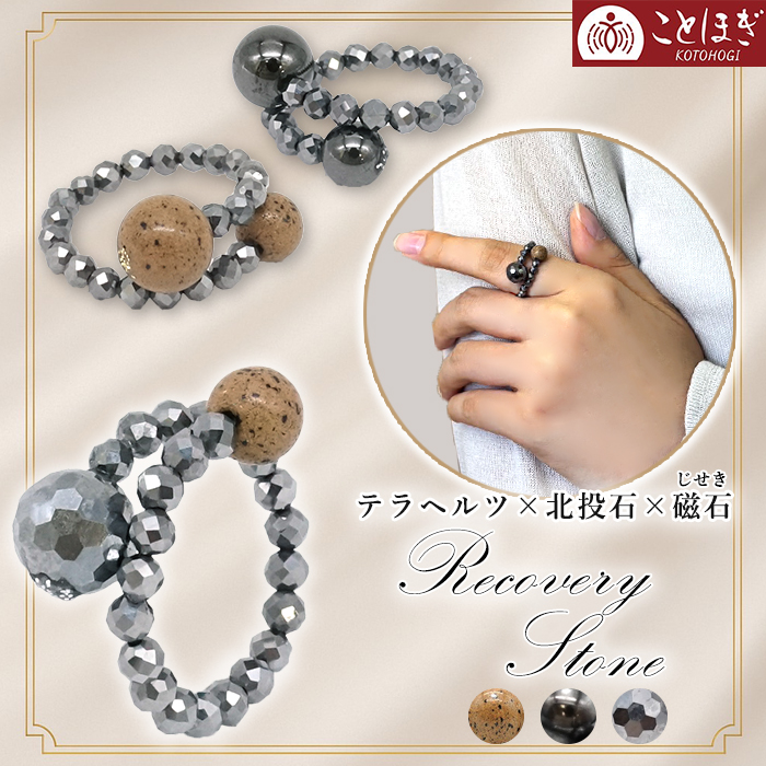 北投石 × テラヘルツ × 磁石 (じせき) 形状記憶リング 一連 日本製 自社製 高純度 ヘマタイト 血流改善 肩こり 冷え性 健康ストーン 国内品質検査済
