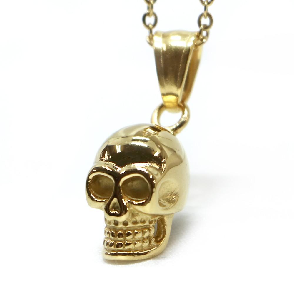 シンプルなスカル(骸骨)の定番と一定いい感じのゴールドカラーネックレスです