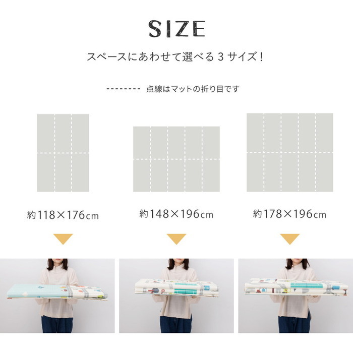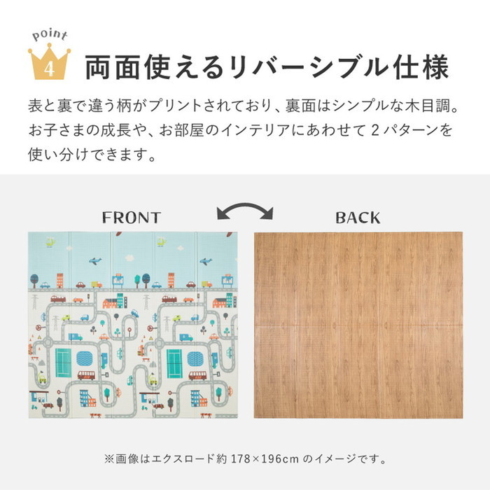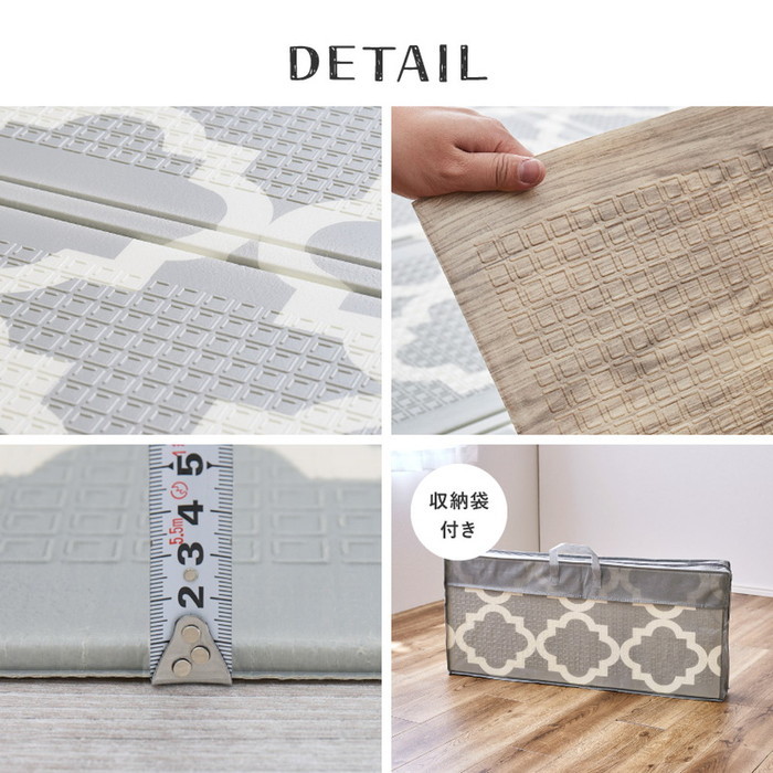 | 商品説明 | 汚れてもサッとひと拭き、お手入れ楽々! 適度なクッション性や、足音など階下への防音対策にもなり、子供の遊び場にもおすすめなクッションプレイマットです。 使わない時はコンパクトに折りたたんで収納も簡単。マットがぴったり入る収納袋付き。 裏面は木目柄になっていてリバーシブル使用も可能です。 【サイズ】約 横178×縦196cm (厚み約 横8mm) 【デザイン】エクスロード、エクスモロッコ 【素材】ポリエチレン100% 【機能】撥水・耐熱(70℃)・水拭きOK・リバーシブル・コンパクト仕様 ※ホットカーペット・床暖房との併用不可×縦 【生産国】中国 ※モニターにより、色の見え方が実際の商品と異なることがございます。 ※画像はイメージです。商品・サイズにより柄の入り方など、現物と多少異なる場合がございます。 |