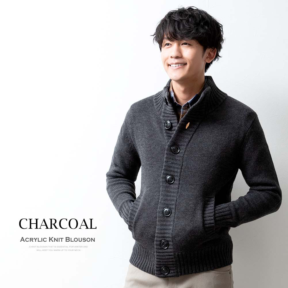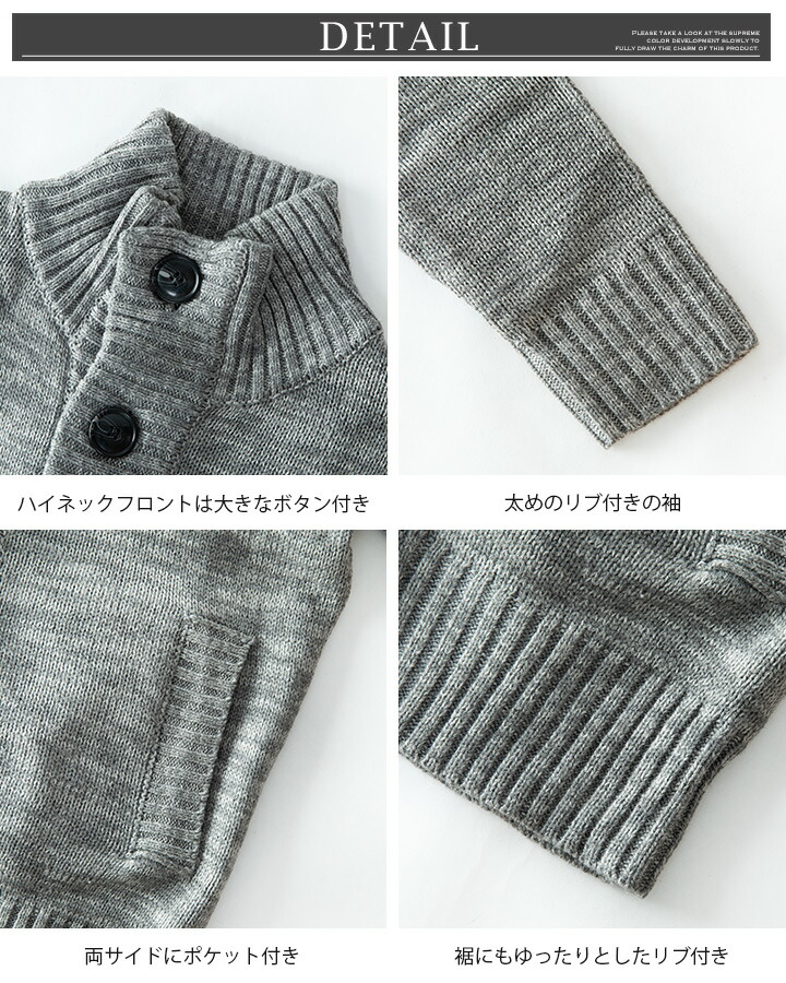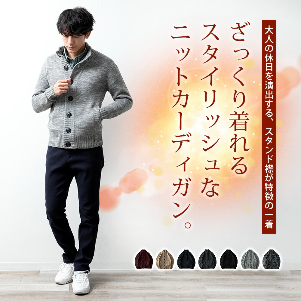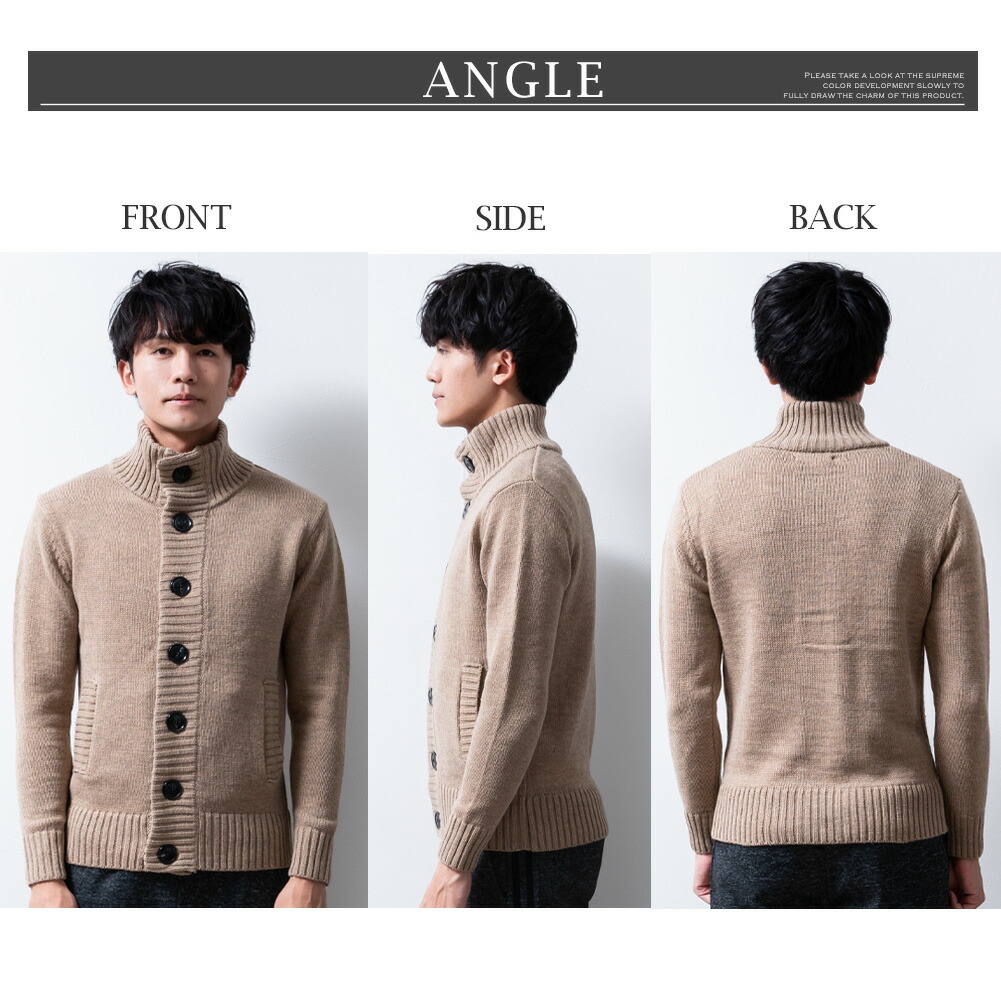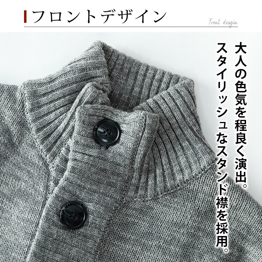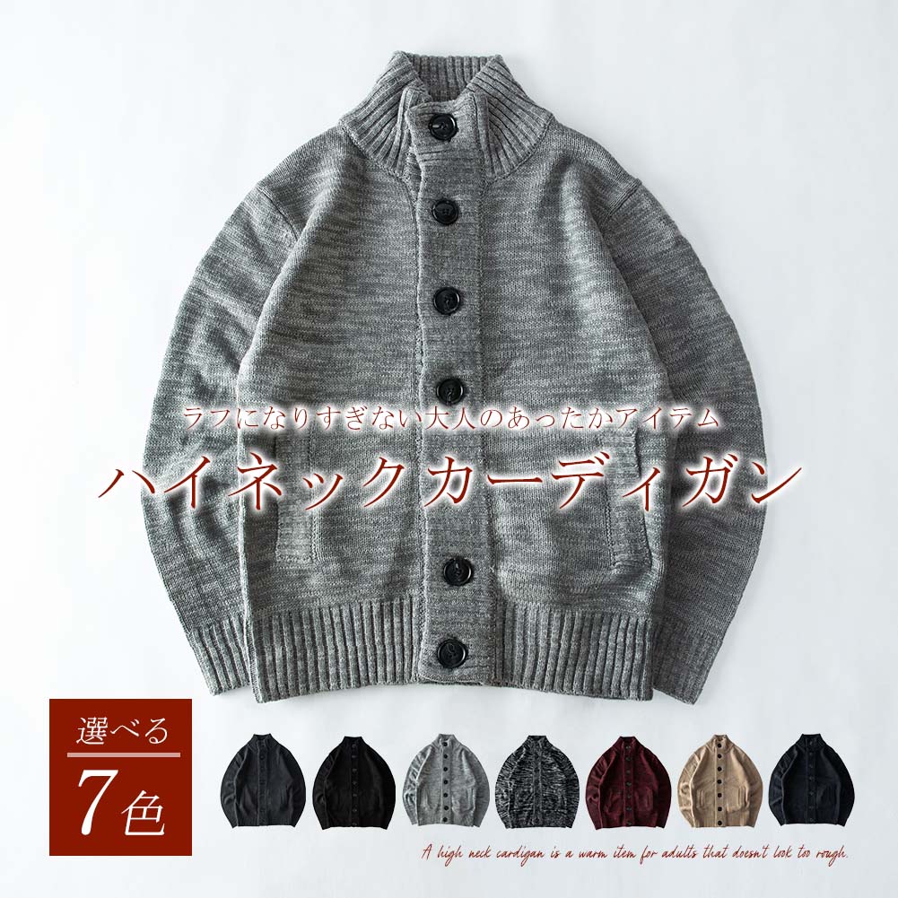 ニット メンズ カーディガン ハイネック 暖かい スタンドカラー ニットカーディガン 秋冬 立ち襟 メンズニット カジュアル M L 無地 XL