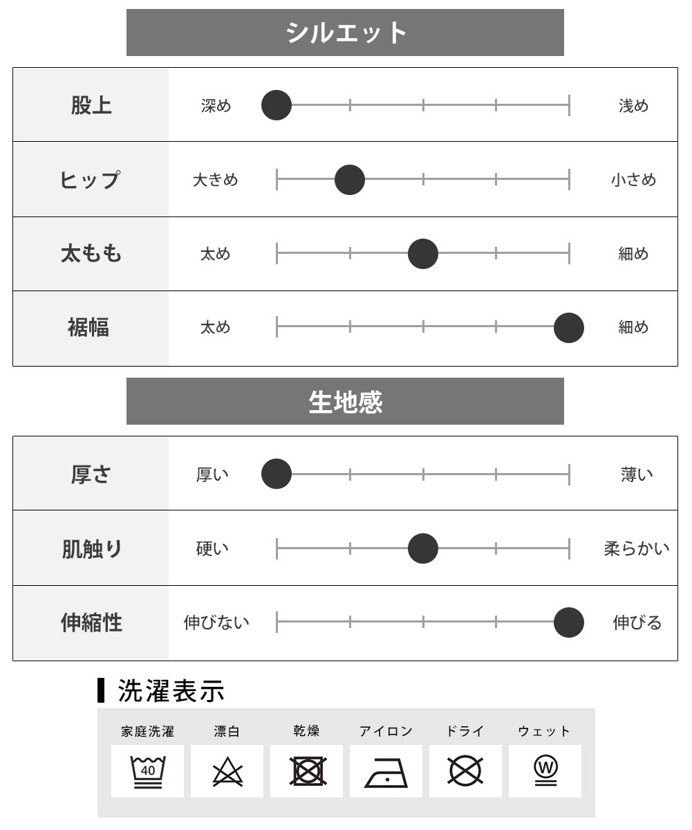 ・実寸サイズ表記の為、ウエストにゴムなどの伸縮性がある素材を使用しているお品物は、サイズ表記の中央値部分を基準としてサイズをご検討ください。