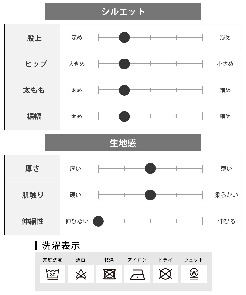 M : ウエスト77cm 股上33cm 股下78cm もも幅36.5cm 裾幅23cm