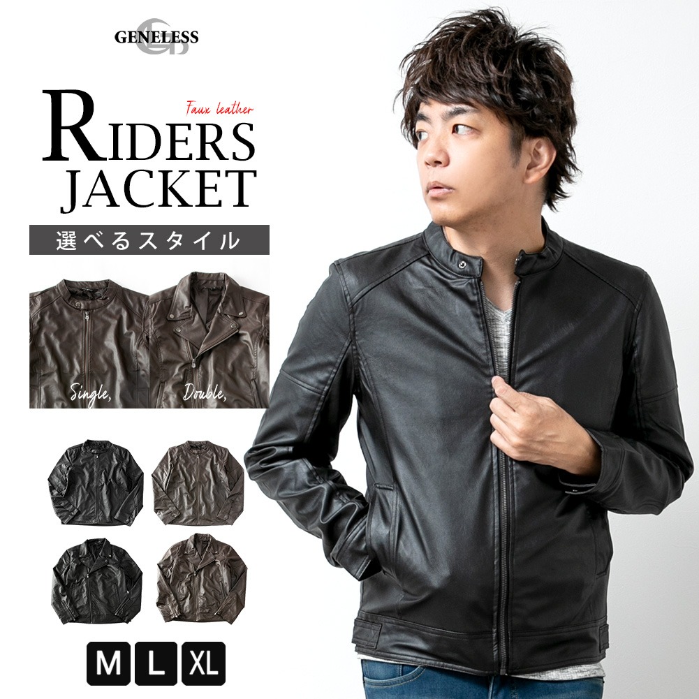 ライダースジャケット メンズ アウター 秋 冬 ブルゾン フェイクレザー ダブル シングル 革ジャン 大きいサイズ PUレザー シンプル 黒 茶 長袖