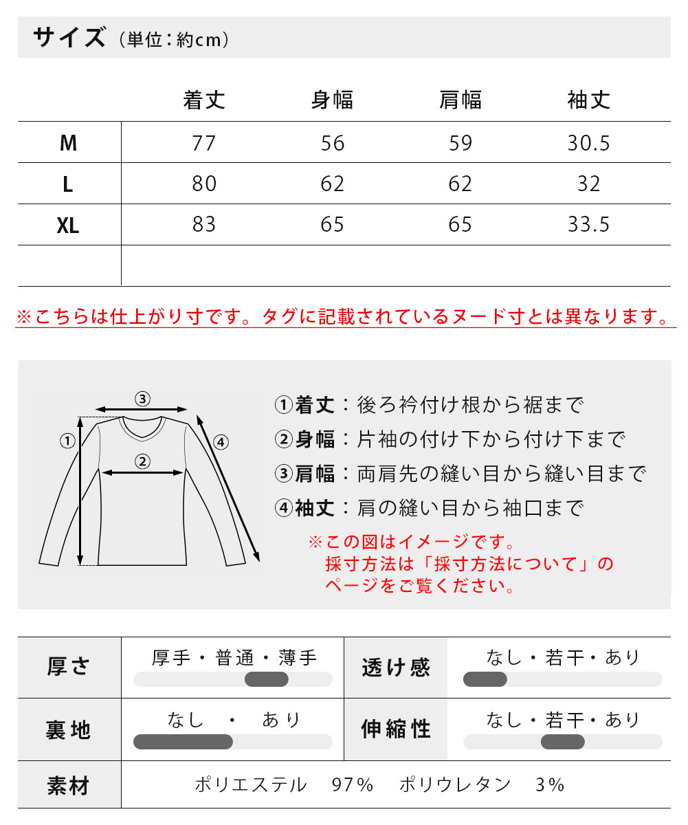 M : 着丈77cm 身幅56cm 肩幅59cm 袖丈30.5cm