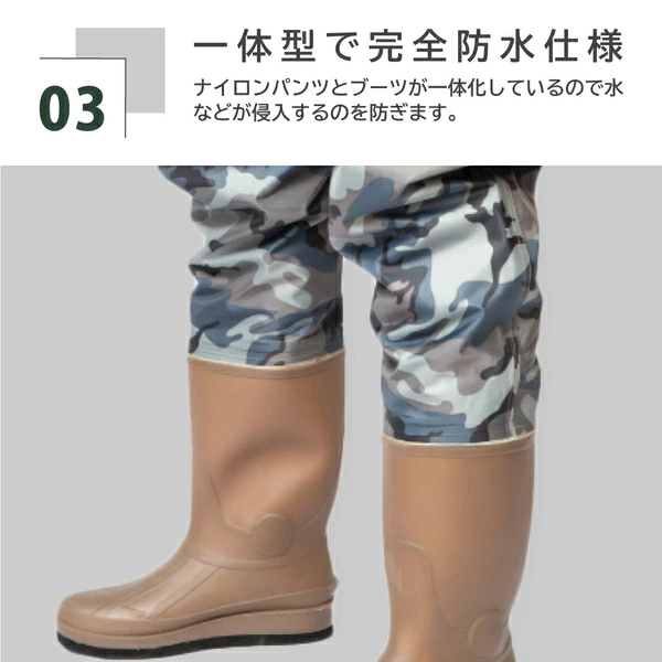 思わぬ高波や水しぶきから水の侵入を防ぐ、安全第一なチェストハイタイプ!